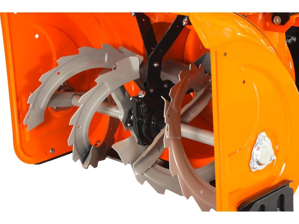 Ширина очистки составляет 71 см. Модель способна справится с сугробами высотой до 54 см. Двухступенчатый шнек из стали обеспечивает надежный захват снежного слоя с транспортировкой его по стальному желобу. Выброс собранного снега осуществляется на расстояние до 11 метров. Выбор направления выброса, а также дальности предусмотрительно возможен с панели оператора.