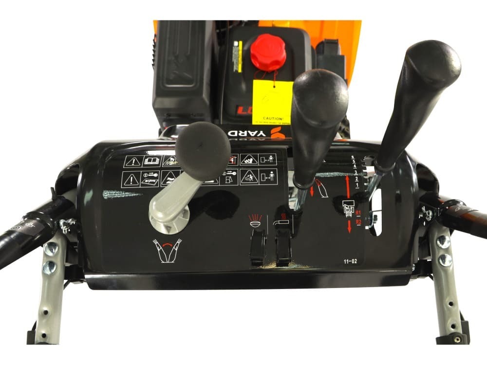 Колеса увеличенного размера с противоскользящими шинами вместе с опорными лыжами позволяют тяжелой технике весом 105 кг оставаться устойчивой, но маневренной. Пользователю доступно шесть передних и две задние передачи. Несмотря на большой вес снегоуборщиком YARD FOX 7154E довольно легко управлять даже одной рукой. Подогрев ручек приносит дополнительный комфорт при длительной работе на холоде. В комплект поставки модели входят срезные болты и специальная лопатка для очистки шнека.
